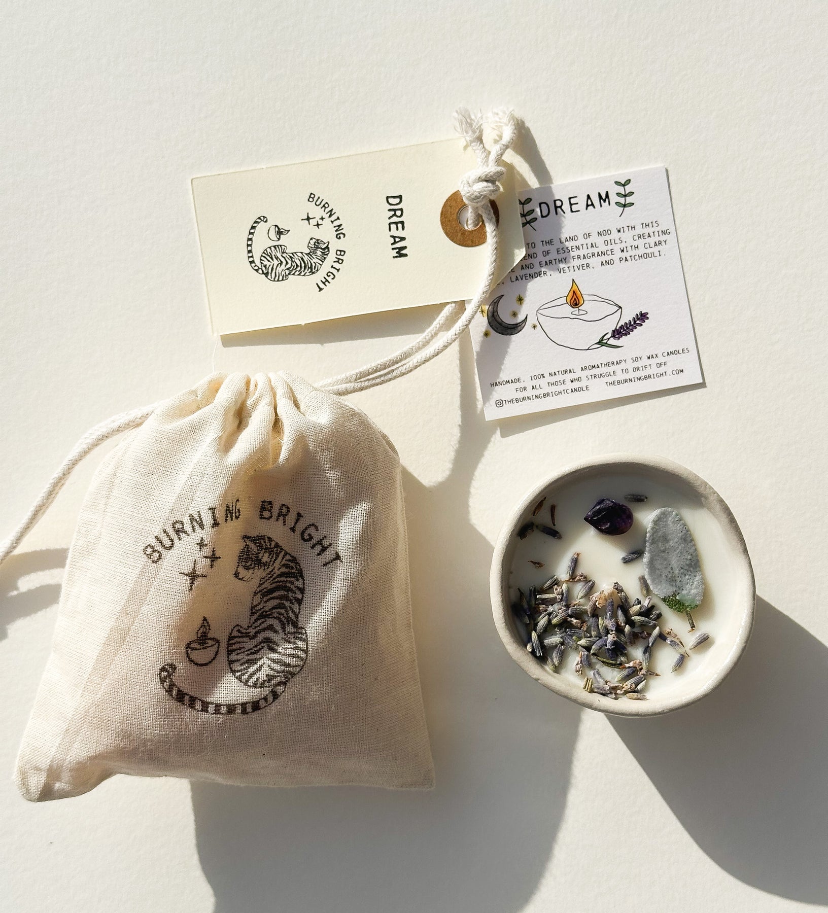 Is how deeply considered every Burning Bright candle is, from the hand-built ceramic pinch pots to the carefully blended essential oils and foraged botanicals. Each piece feels personal, intentional and quietly beautiful, rooted in aromatherapy, sustainability and slow, meaningful making. We’re drawn to the way every candle tells a story, using natural ingredients, symbolism and craftsmanship to create something that feels both grounding and uplifting, a small ritual to treasure long after the candle has burned.