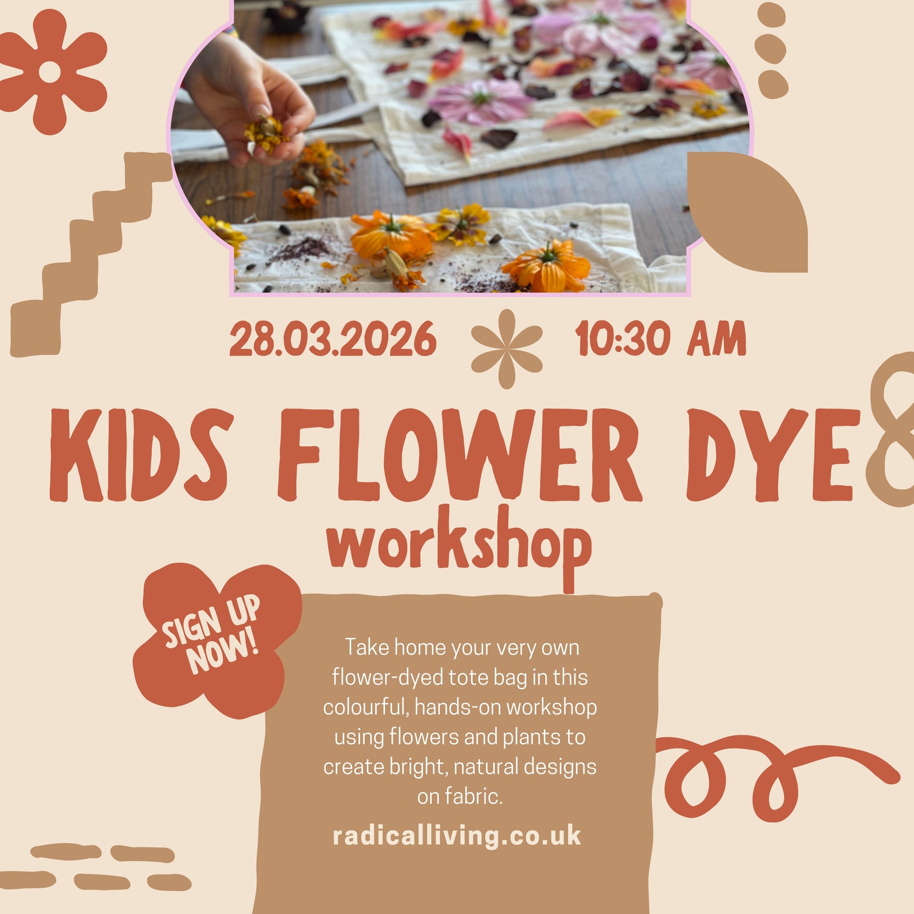 While the bags are processing, we’ll also experiment with natural flower paints, making this a playful, creative session from start to finish. A joyful way to brighten the season and explore colour, nature and creativity together.