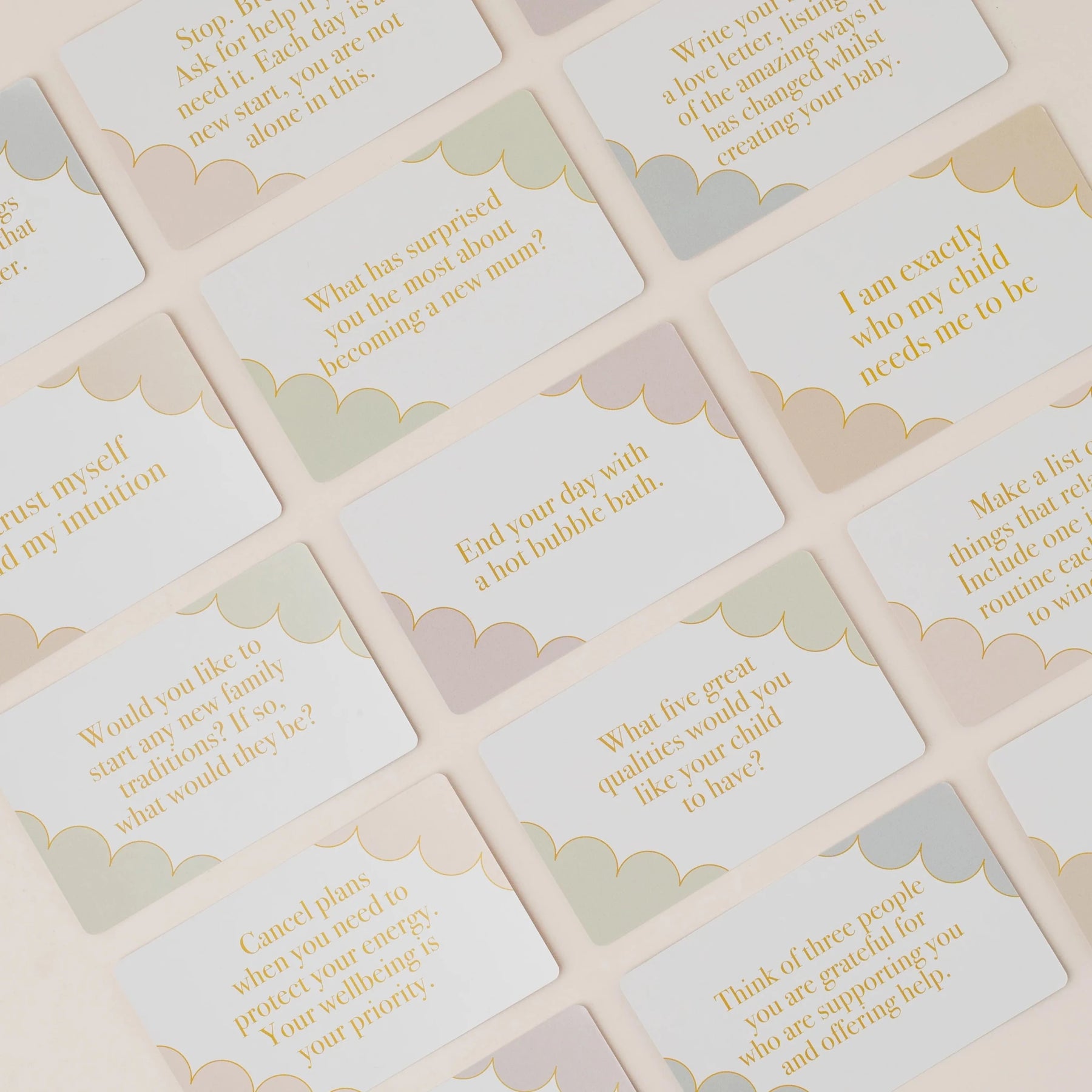 Each card introduces a short, achievable task or reflection designed to restore balance and remind you that self-care isn’t selfish, it’s essential. Through gratitude, gentle rituals, affirmations, and mindful moments, Mind Cards help you reconnect with yourself and find calm within the chaos of early motherhood.