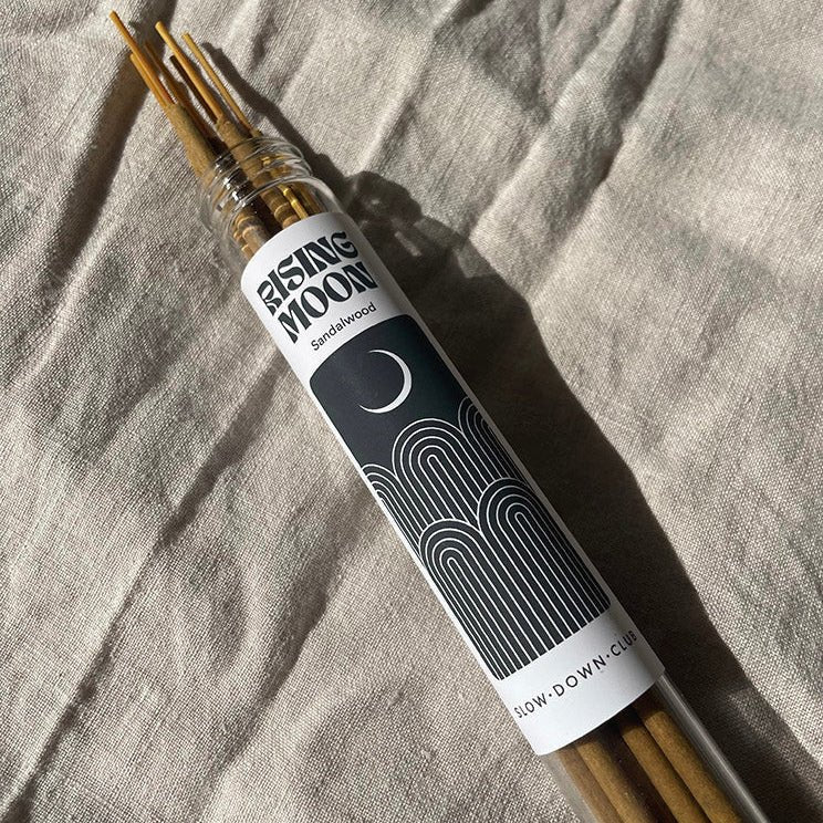 Slow Down Club Rising Moon Incense in Sandalwood.
